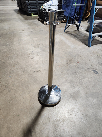 We rent two different types of stanchions. The regular silver chrome stanchion is an all purpose stanchion with a chrome base. This indoor only stanchion has an added rubber cover underneath the base that prevents scratching on delicate surfaces like marble or wood floors. Dimensions: Height: 39" Tall Base: 14" Wide Pole: Approximately 2" Wide Weight: Approximately 18 lbs. eachmore ➔